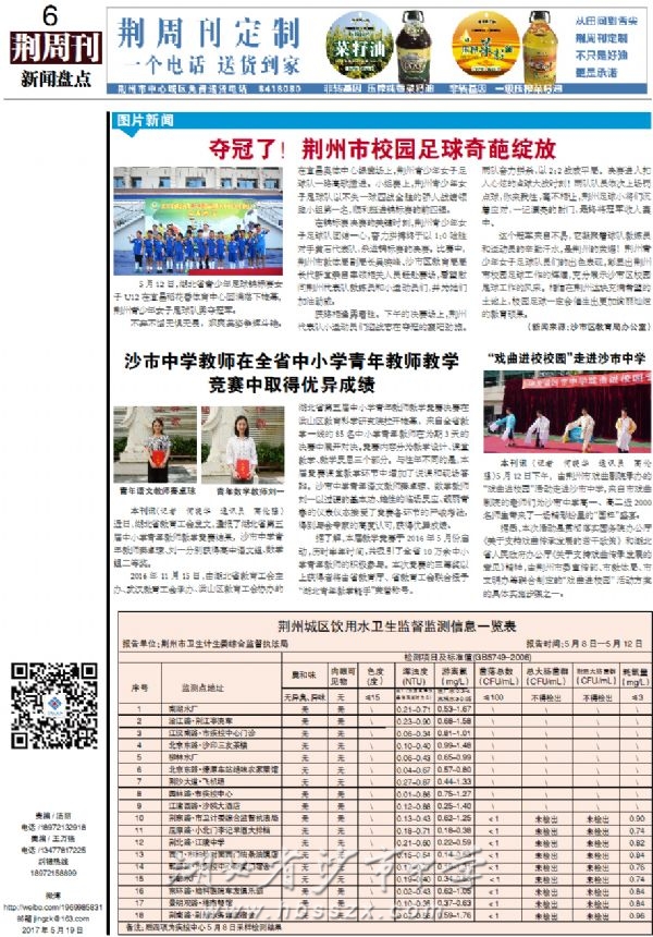 《荆周刊》2017年5月19日报道我校教师赛课获奖和戏曲走进沙市中学