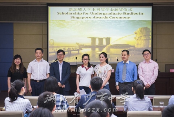 两位同学经过了2月份学校组织的笔试和面试、3月份的全省笔试和5月18~19日在湖北大学由新加坡教育部组织的最后面试等环节,被录取。5月20日上午9:30在湖北省教育厅三楼多功能厅举行了新加坡大学本科奖学金颁奖仪式。两位同学一关一关走过来,终于梦想成真了!