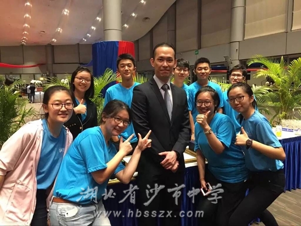 两名同学与省教育厅领导和新加坡教育部官员合影
