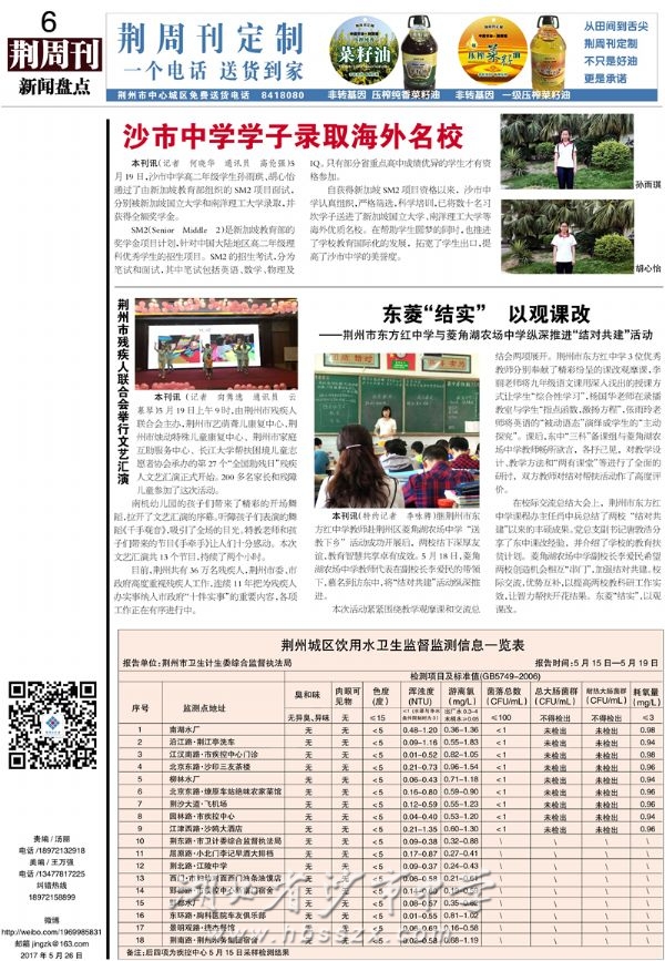 《荆周刊》2017年5月26日报道我校学生录取海外名校