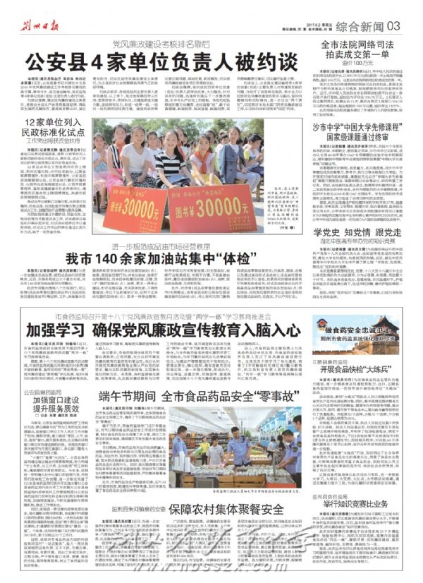 《荆州日报》2017年6月2日报道我校国家级课题通过终审