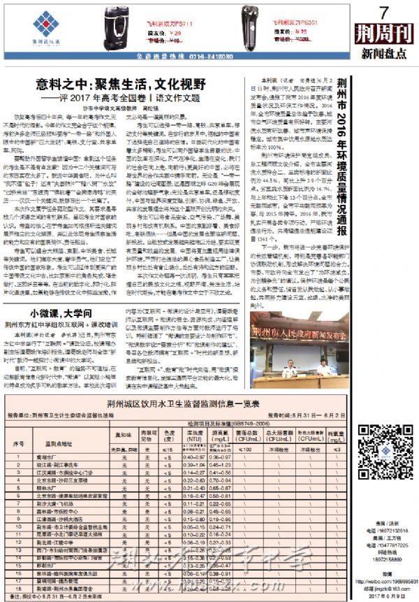 《荆周刊》2017年6月9日刊登我校教师点评高考试卷文章