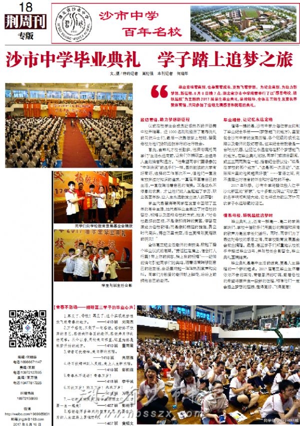 《荆周刊》2017年6月16日报道我校2014级学生毕业典礼