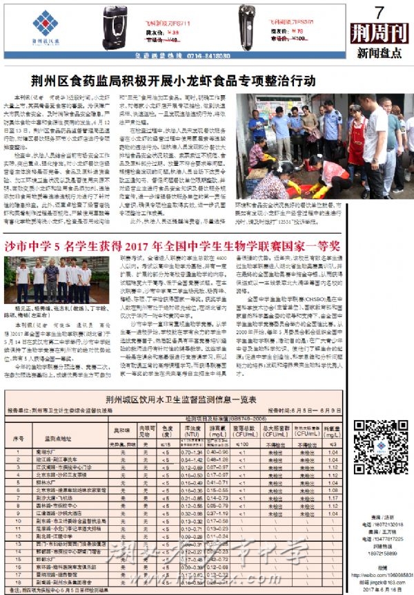 《荆周刊》2017年6月16日报道我校学子在生物学联赛中获得国家一等奖
