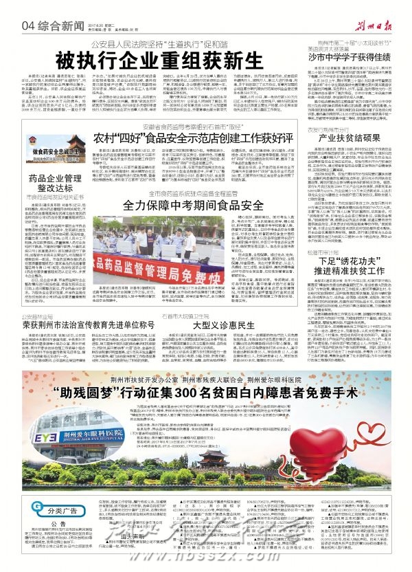 《荆州日报》2017年6月20日报道我校学生在荆州市小太阳读书节英语演讲比赛中获得优异成绩