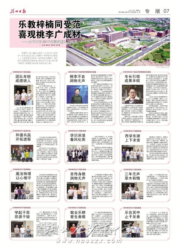《荆州日报》2017年6月21日专版介绍我校2017级教师团队
