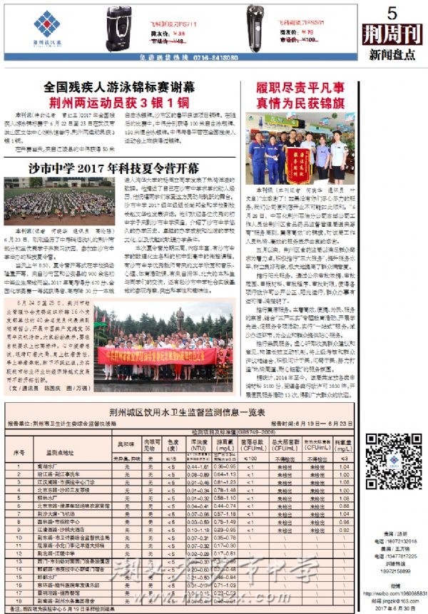 《荆周刊》2017年6月30日报道我校科技夏令营开营