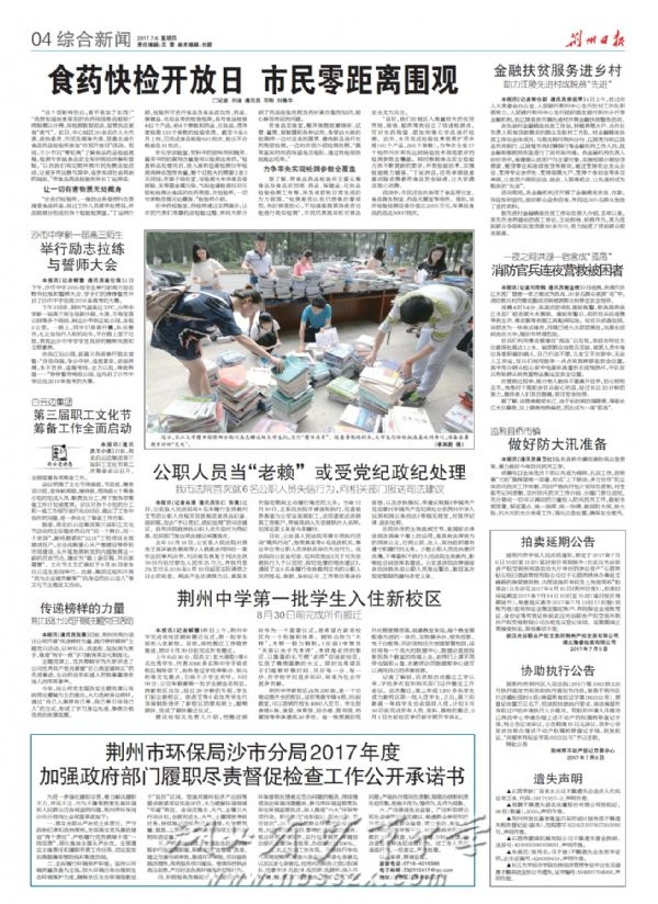 《荆州日报》2017年7月6日报道我校新高三举行励志拉练活动