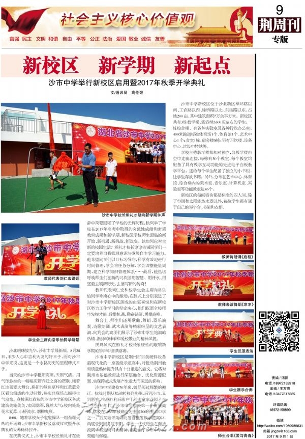 《荆周刊》2017年9月1日报道我校新学期开学典礼