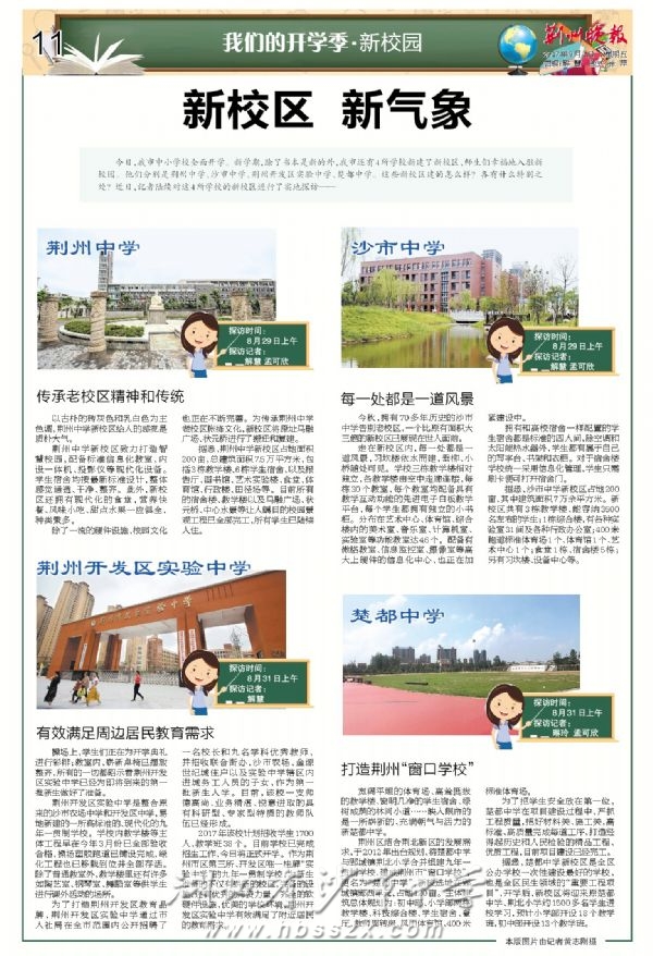 《荆州晚报》2017年9月1日报道我校新校区新气象