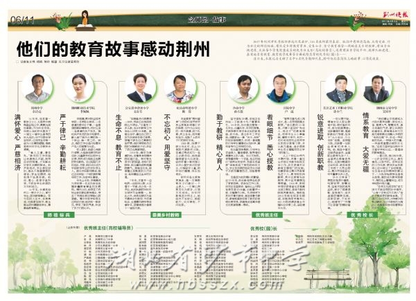 《荆州晚报》2017年9月8日报道我校教师孙石毅被评为市优秀班主任