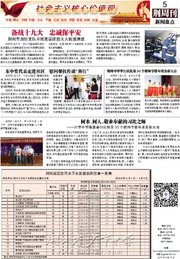 《荆周刊》2017年9月15日报道我校庆祝第33个教师节