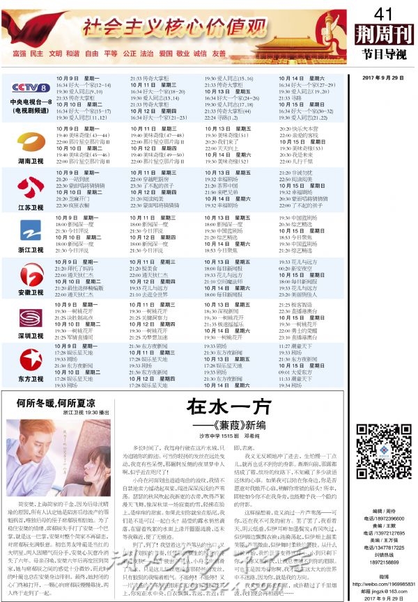 《荆周刊》2017年9月29日刊登我校学生读书心得