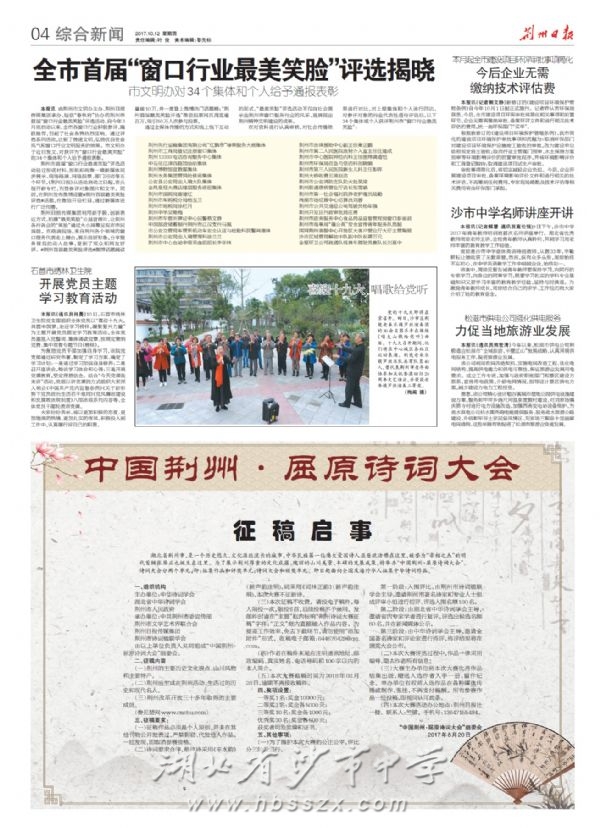 《荆州日报》2017年10月12日报道我校举办名师讲座