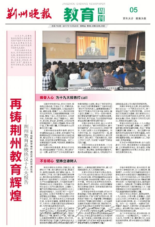 《荆州晚报》2017年10月20日报道我校师生热议十九大报告