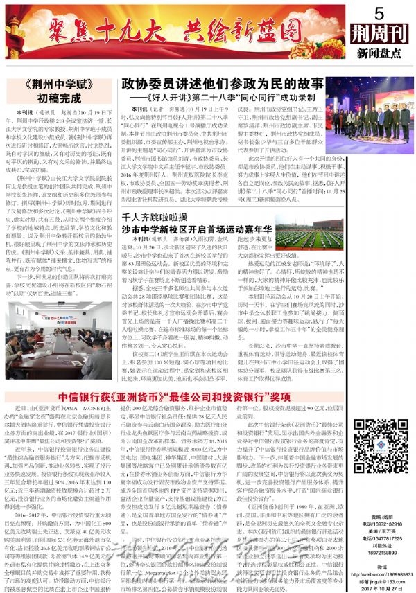 《荆周刊》2017年10月27日报道我校第83届田径运动会