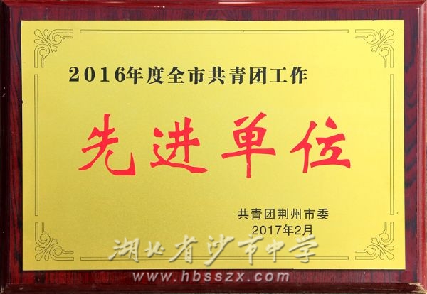 2017年02月学校团委被评为2016年度全市共青团工作先进单位