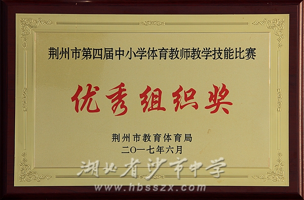 2017年06月学校获荆州市第四届中小学体育教师教学技能比赛优秀组织奖