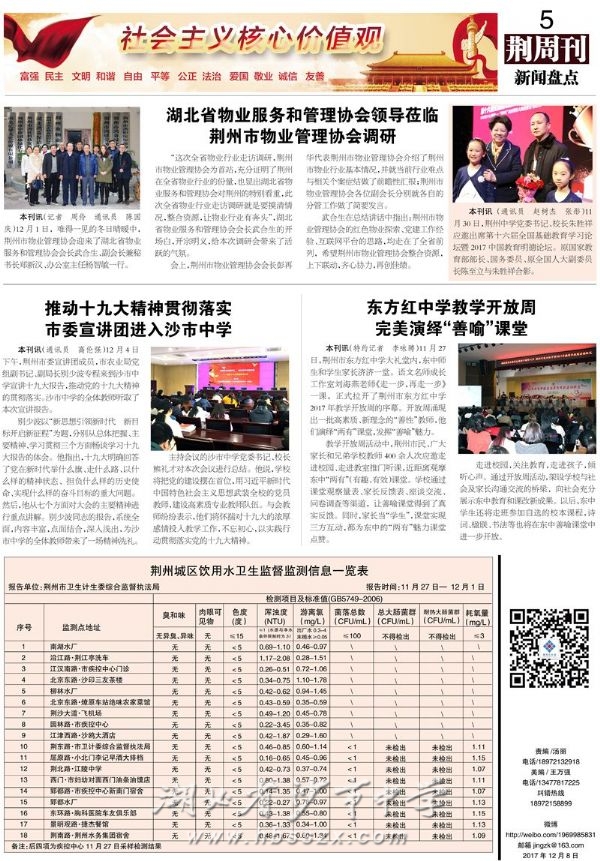 《荆周刊》2017年12月8日报道市委宣讲团成员为我校全体教师宣讲十九大精神