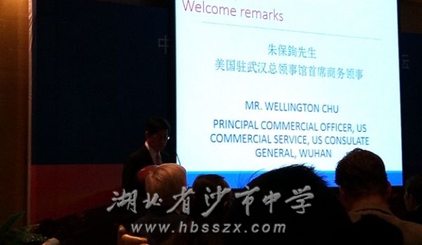 论坛开始,东湖高新区教育文化体育局局长杨志霞、美国驻武汉总领事馆首席商务领事Wellington Chu分别作了领导致辞。