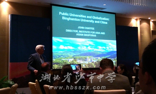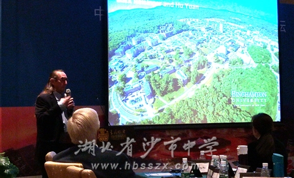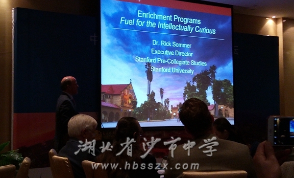 随后,美国团队专家进行了专题介绍。美国纽约州立宾汉姆顿大学亚洲学院院长John Chaffee博士作了题为“美国公立大学如何应对全球化以及校园里与日俱增的中国元素”的演讲;美国斯坦福大学本科前教育中心执行主任Rick Sommer博士作了题为“斯坦福大学本科前教育素养项目的发展”的演讲;美国纽约州立宾汉姆顿大学Mark Reisinger博士介绍了“在线社区:大学预备项目”;美国加州大学洛杉矶分校Justin Zacker博士作了题为“线下的国际课堂”的报告;美国巴德学院亚洲区招生主管Shawn Moore作了“书面材料之外,巴德面试官还看什么?”的招生主题介绍。