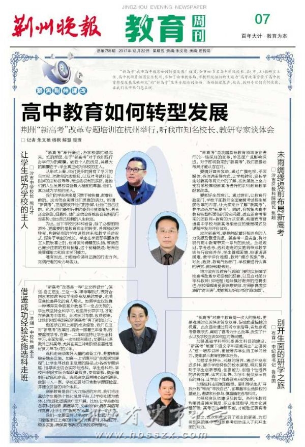 《荆州晚报》2017年12月22日发表熊礼才校长参加新高考培训学习体会