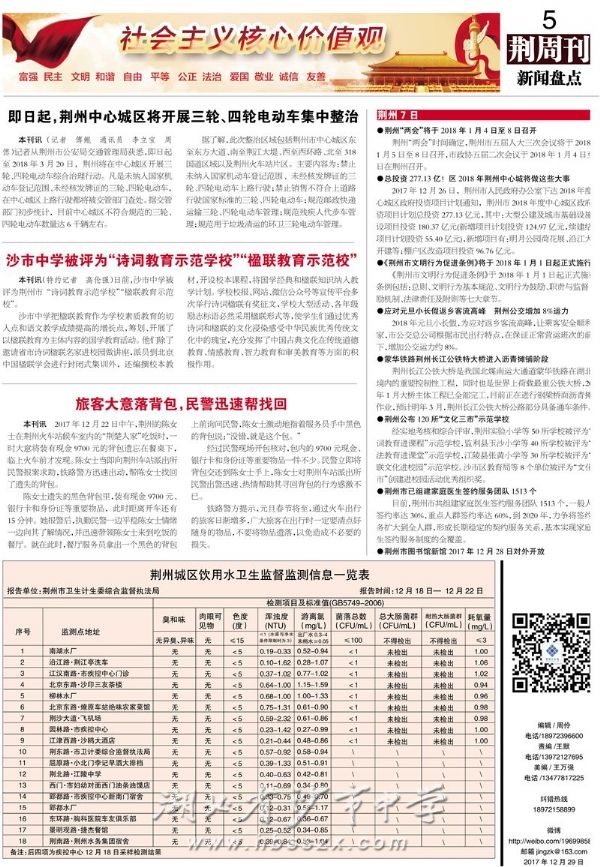 《荆周刊》2017年12月29日报道我校获得"诗词教育示范学校"和"楹联教育示范学校"称号