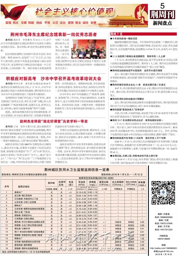 《荆周刊》2018年1月19日报道我校积极应对新高考改革
