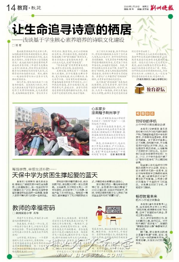 《荆州晚报》2018年1月19日报道我校召开主题班会"管好你的手机"