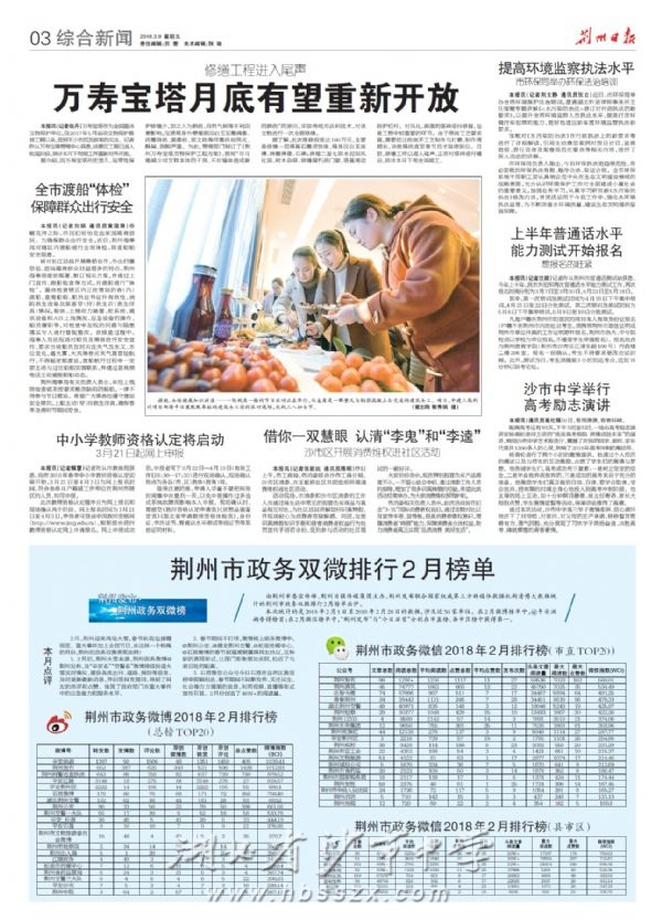 《荆州日报》2018年3月9日报道我校举行高考励志讲座