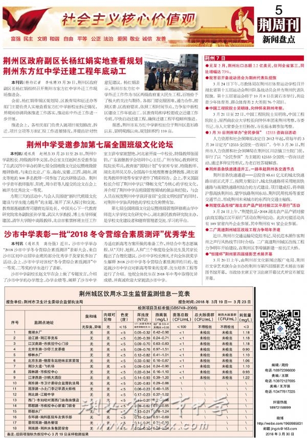 《荆周刊》2018年3月30日报道我校表彰冬令营优秀学生