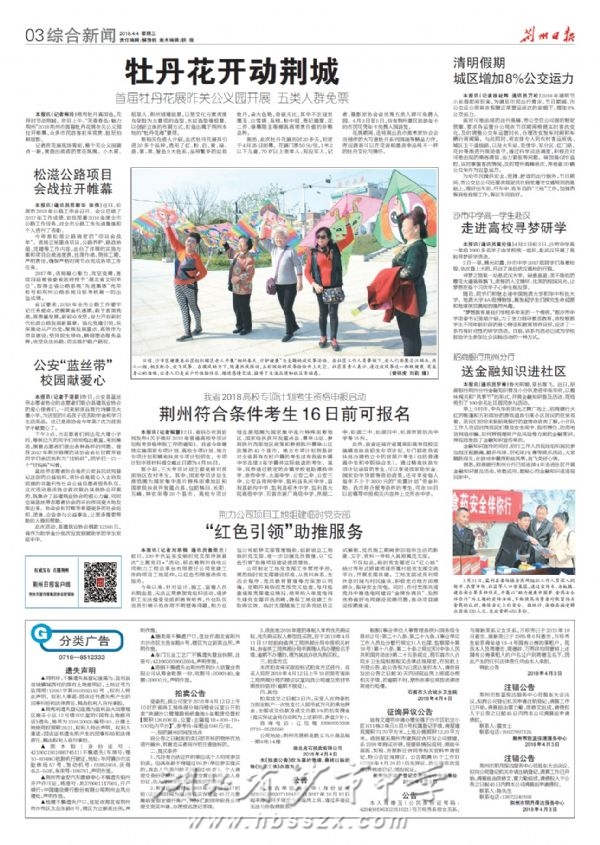 《荆州日报》2018年4月4日报道我校高一学子赴武汉高校寻梦研学