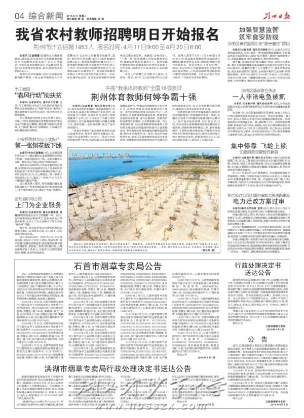 《荆州日报》2018年4月10日报道我校何婷老师进入央视"我是体育老师"10强争霸赛