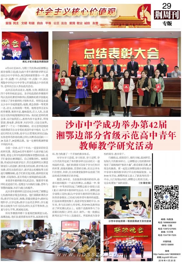 《荆周刊》2018年4月20日整版报道我校举办湘鄂边重点中学教学研讨活动