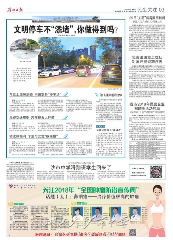 《荆州日报》2018年4月19日报道原沙市三中68届滑翔班母校重聚