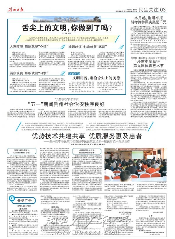 《荆州日报》2018年5月3日报道我校第九届体育艺术节