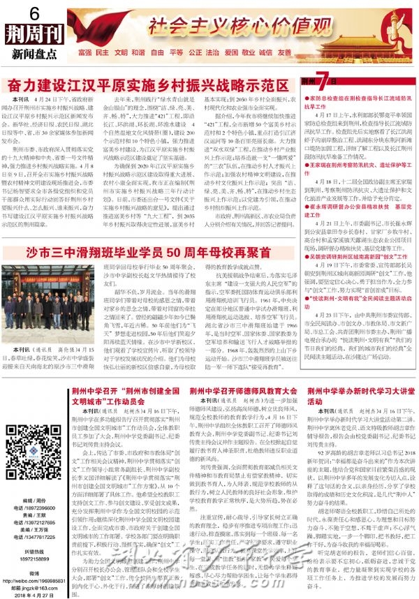 《荆周刊》2018年4月27日报道我校68届滑翔班学员毕业50周年重返母校