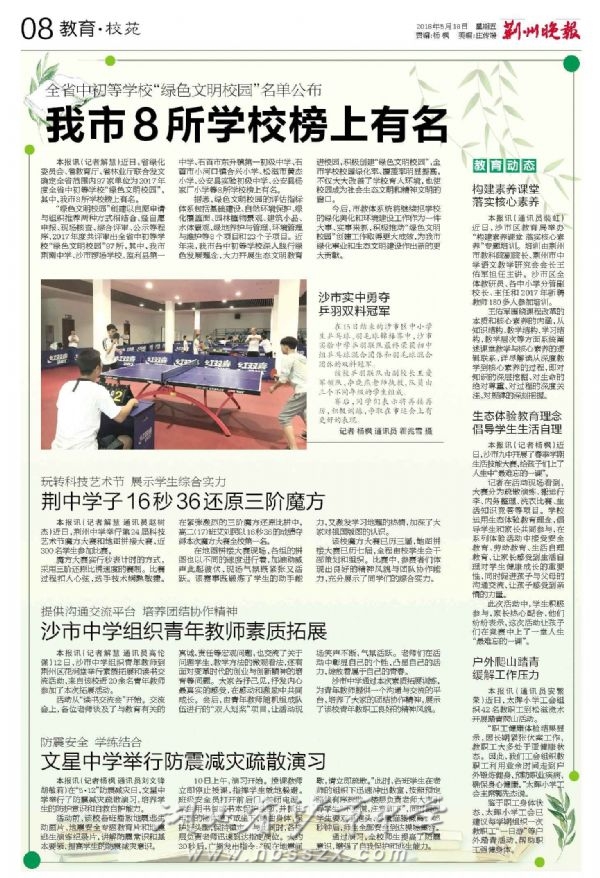 《荆州晚报》2018年5月18日报道我校组织青年教师素质拓展活动
