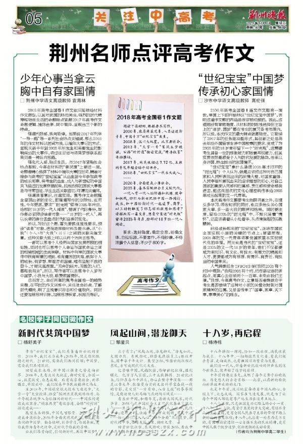 《荆州晚报》2018年6月8日发表我校教师点评高考作文文章
