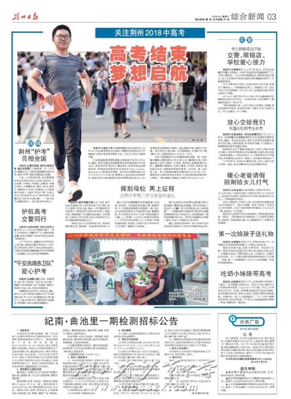 《荆州日报》2018年6月9日报道我校高三毕业典礼