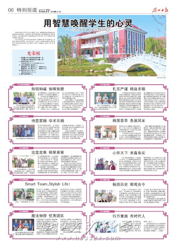 刚刚毕业的沙市中学2018届高三学生,最骄傲的就是提起他们年级组的全体教师。这些老师,有的性情温和,有的幽默诙谐,有的急性刚烈。他们经验丰富,充满智慧;他们尽职尽责,甘为人梯;他们奋力拼搏,无怨无悔。