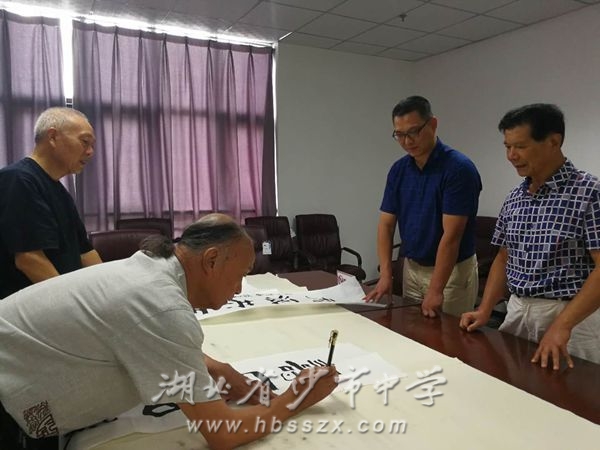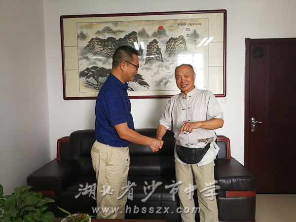 8月17日,沙市中学1956 届校友李裕善、翁昌全一行重返习坎园,向母校赠送书法作品。沙市中学校长熊礼才、副校长赵文华热情接待。