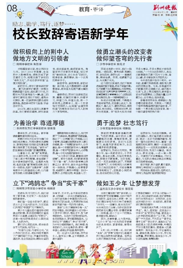 《荆州晚报》2018年8月31日发表熊校长新学期寄语