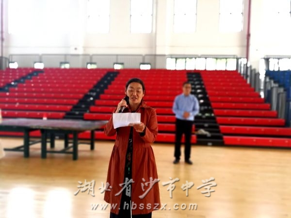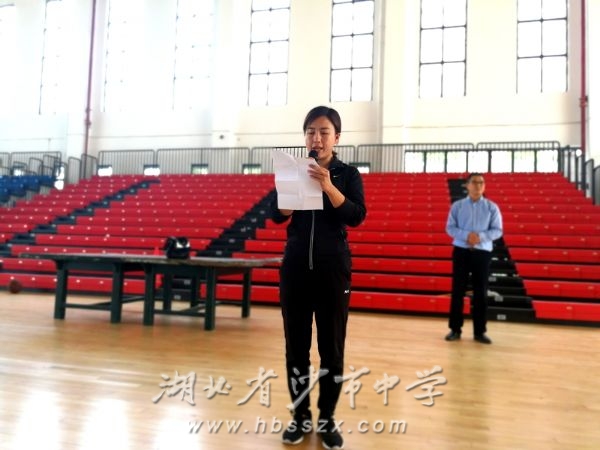 体育教师何婷代表裁判员宣读了比赛规则,熊礼才校长宣布大赛开幕。