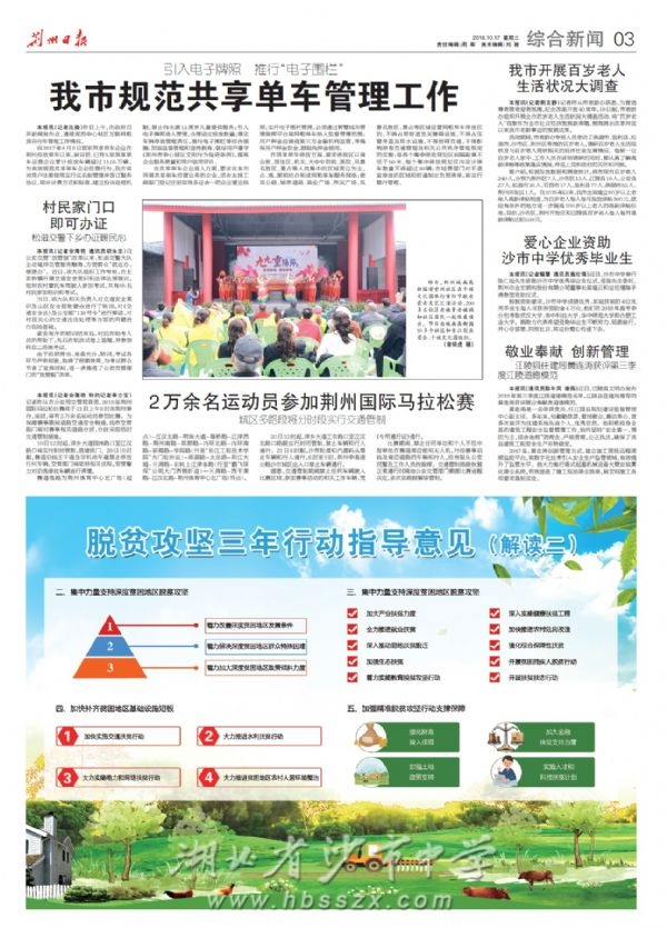 《荆州日报》2018年10月17日报道爱心企业家资助我校优秀毕业生