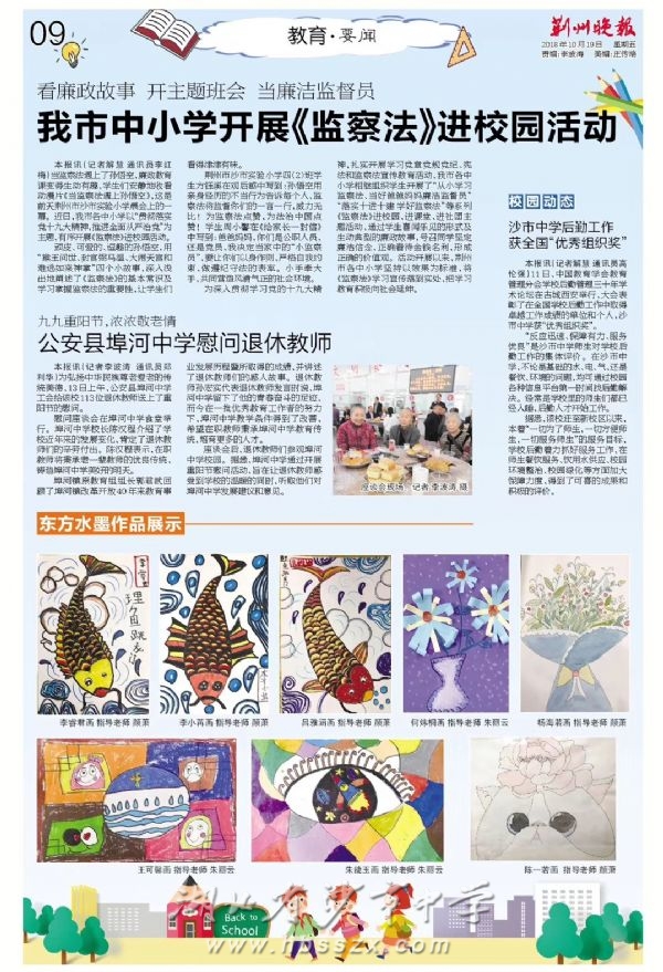 《荆州晚报》2018年10月18日报道我校后勤工作获全国"优秀组织奖"