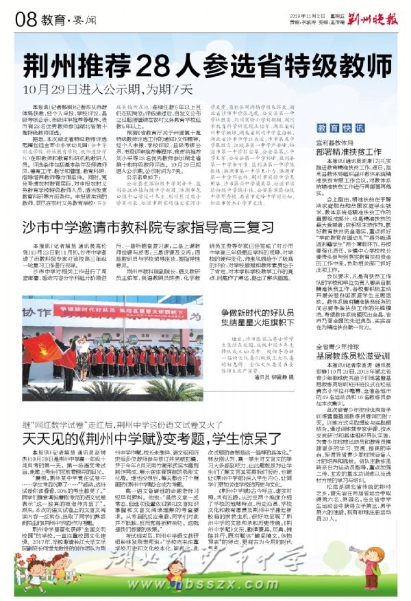 《荆州晚报》208年11月2日报道市教科院专家视导我校高三一轮复习备考
