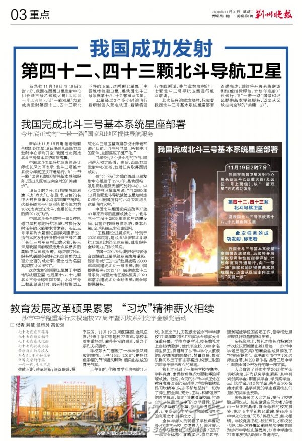 《荆州晚报》2018年11月20日报道我校庆祝建校77周年