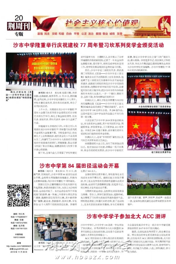 《荆周刊》2018年11月30日报道我校举办校庆活动、运动会、北大ACC测试
