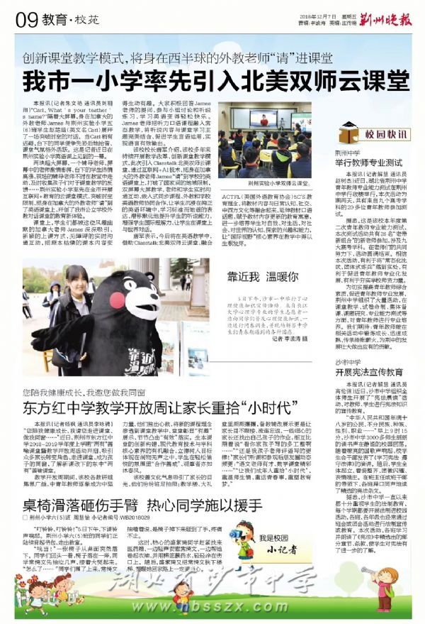 《荆州晚报》2018年12月7日报道我校进行宪法宣传教育